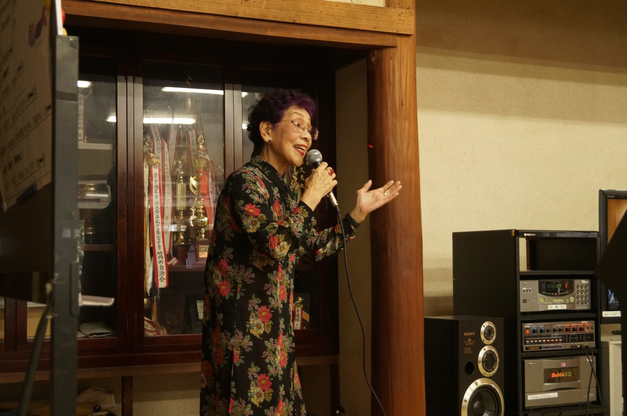 表彰式に続く祝宴は、「踊りの会」の演舞(湯島の白梅)を皮切りに、いつも期待を裏切らない「雄次、春枝の”みんなで一緒に歌おう”」、そして当クラブでは3回目となった「紅白カラオケ歌合戦」で盛り上がりました。