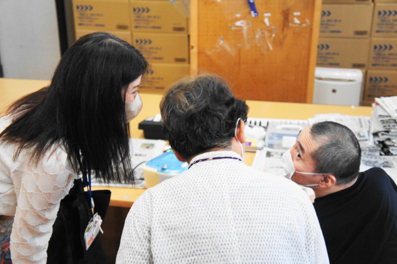 贈呈式の後、清水施設長さん自らが施設を案内下さいました。入所者の方々が輪に集まってボッチャをされていたり、簡単な軽作業をされていたり、リハビリを受けておられたり。皆さんは我々の訪問に笑顔を返して下さり、言葉にならぬ交流が図れました。