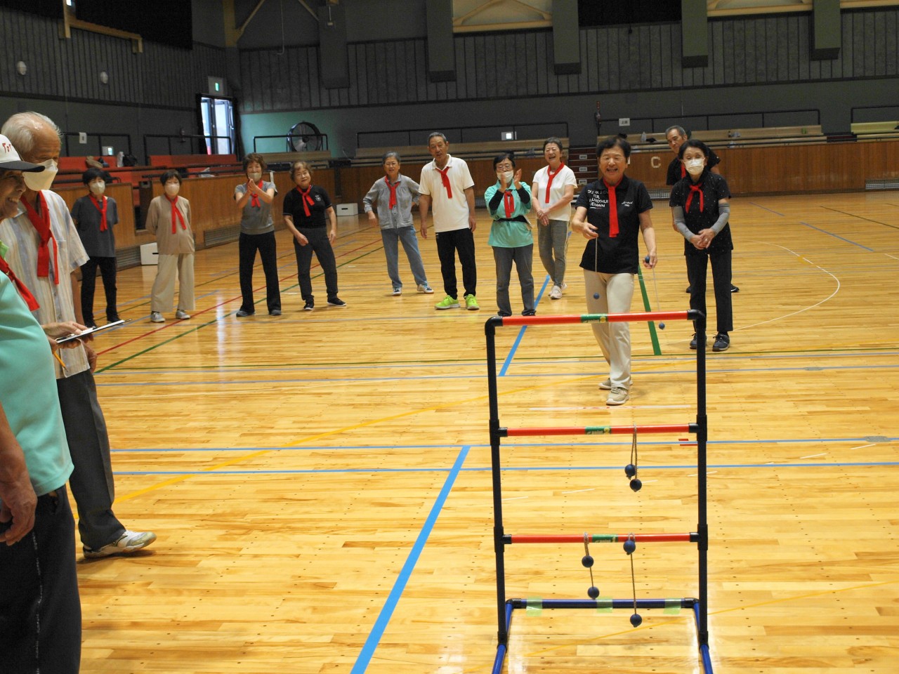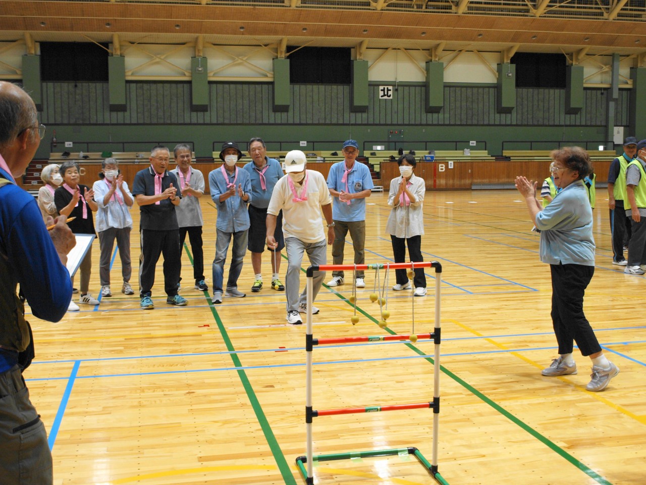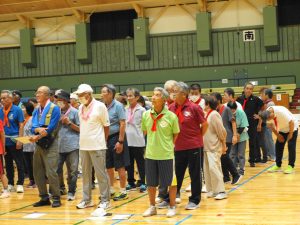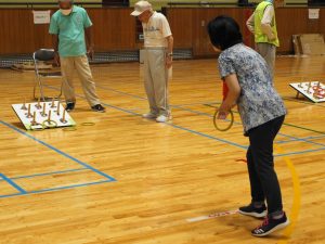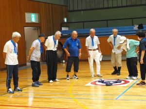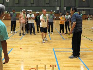 第23回ニュースポーツ大会 2025年9月21日健康委員会, 実績-健康委員会, 連合会からのお知らせことぶきクラブ管理者 酷暑の気配も落ち着き、朝夕の虫の声に秋の深まりを感じる季節となり、境港市内各所の老若男女143名の方々が市民体育館へ集い、ニュースポーツ大会を開催致しました。 競技中は、それぞれのチームから歓喜の声が湧き楽しい時を過ごしました。怪我人もなく無事競技を終了しました。此れもひとえに皆様のご協力のたまものと役員一同感謝いたしております。 結果は次の通りです。 一等賞 渡ことぶきクラブ 二等賞 高松老社・誠道老社クラブ 三等賞 上道ことぶきクラブ 健康委員長 竹内 健治