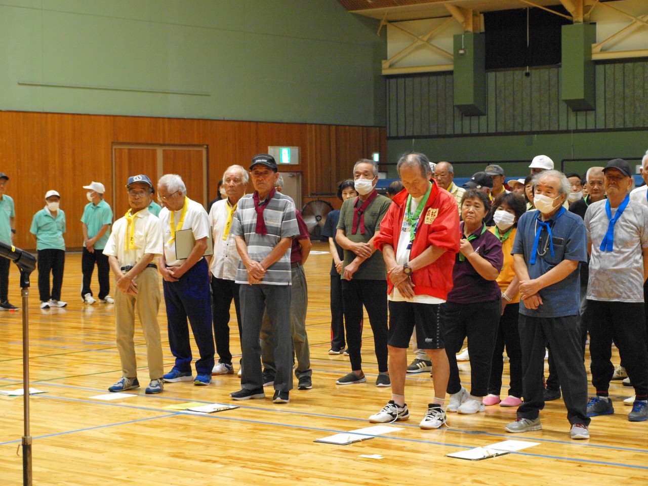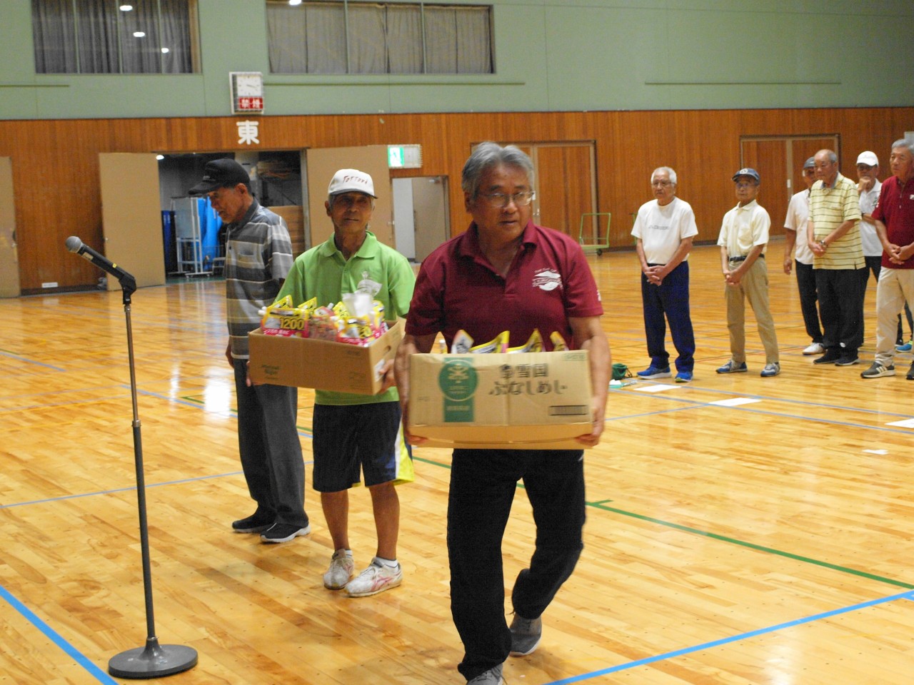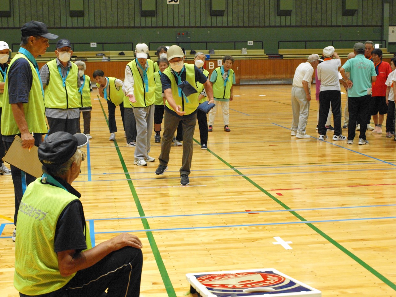 第23回ニュースポーツ大会 2025年9月21日健康委員会, 実績-健康委員会, 連合会からのお知らせことぶきクラブ管理者 酷暑の気配も落ち着き、朝夕の虫の声に秋の深まりを感じる季節となり、境港市内各所の老若男女143名の方々が市民体育館へ集い、ニュースポーツ大会を開催致しました。 競技中は、それぞれのチームから歓喜の声が湧き楽しい時を過ごしました。怪我人もなく無事競技を終了しました。此れもひとえに皆様のご協力のたまものと役員一同感謝いたしております。 結果は次の通りです。 一等賞 渡ことぶきクラブ 二等賞 高松老社・誠道老社クラブ 三等賞 上道ことぶきクラブ 健康委員長 竹内 健治
